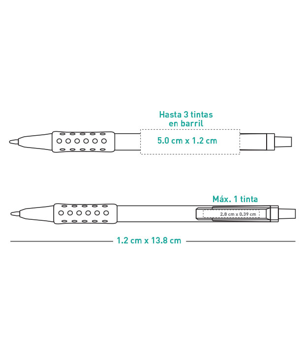 Hasta 3 tintas en barril / 1 en clip Atrás del clip